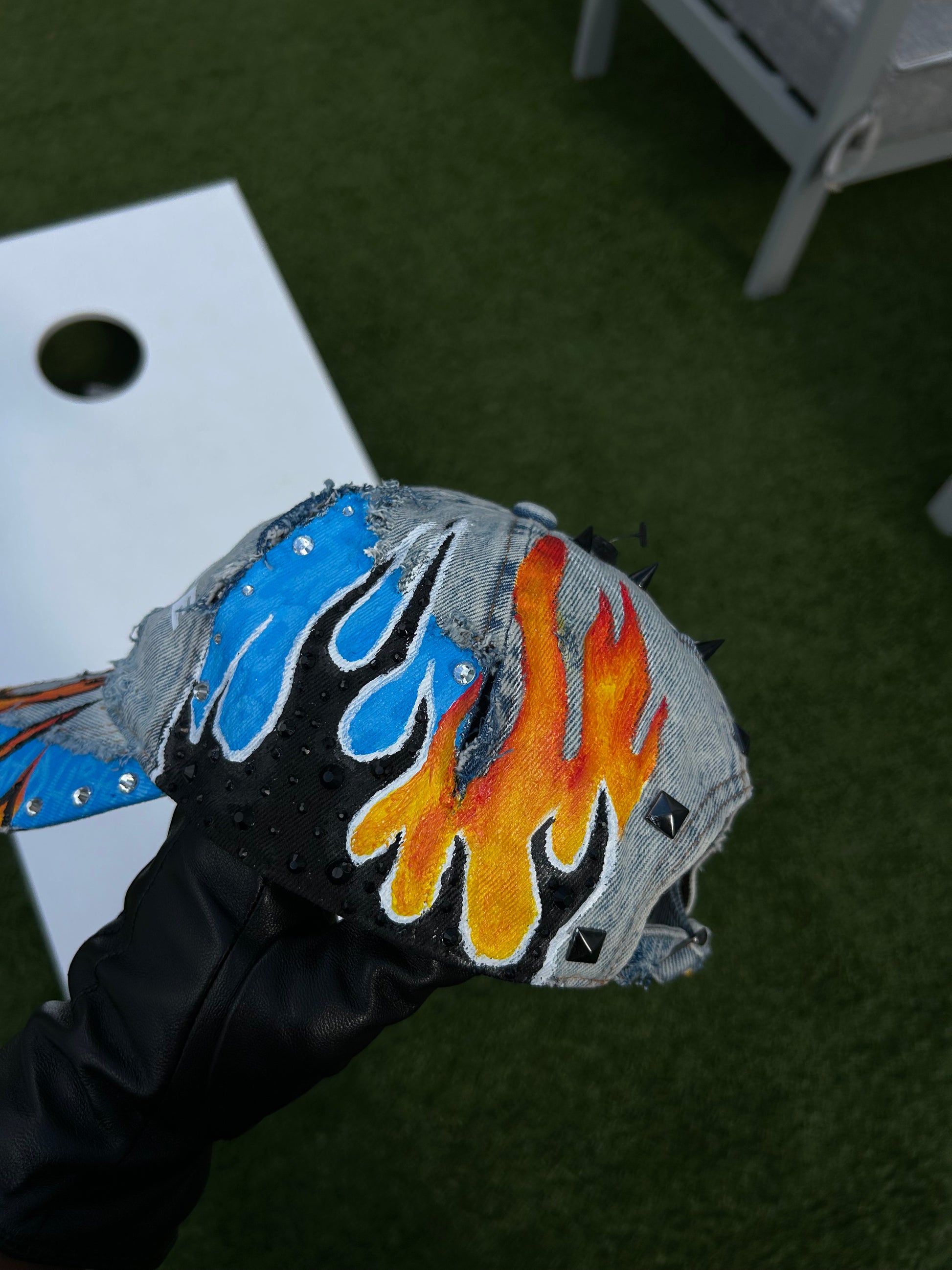 Paint, rhinestones , tags , pins , spikes